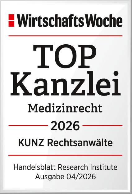 Regelmäßig wird unsere medizinrechtliche Abteilung von Experten-Jurys für ihre medizinrechtliche Expertise prämiert; so wurden wir im aktuellen WirtschaftsWoche-Ranking 2021 zum drirtten Mal in Folge als „TOP Kanzlei Medizinrecht“ und Herr Rechtsanwalt Dr. Fuchs ebenfalls zum dritten Mal in Folge als „TOP Anwalt Medizinrecht“ und damit als einer der bundesweit besten 60 Medizinrechtsanwälte geführt.
